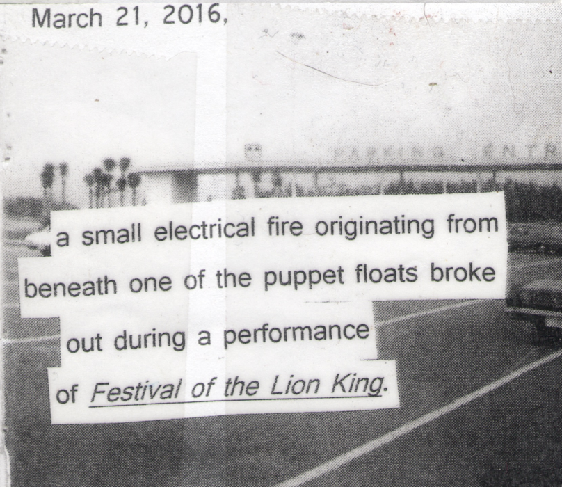 the Wikipedia-sourced zine includes flaming monorails, sudden fatalities and near-misses at The Happiest Place on Earth.