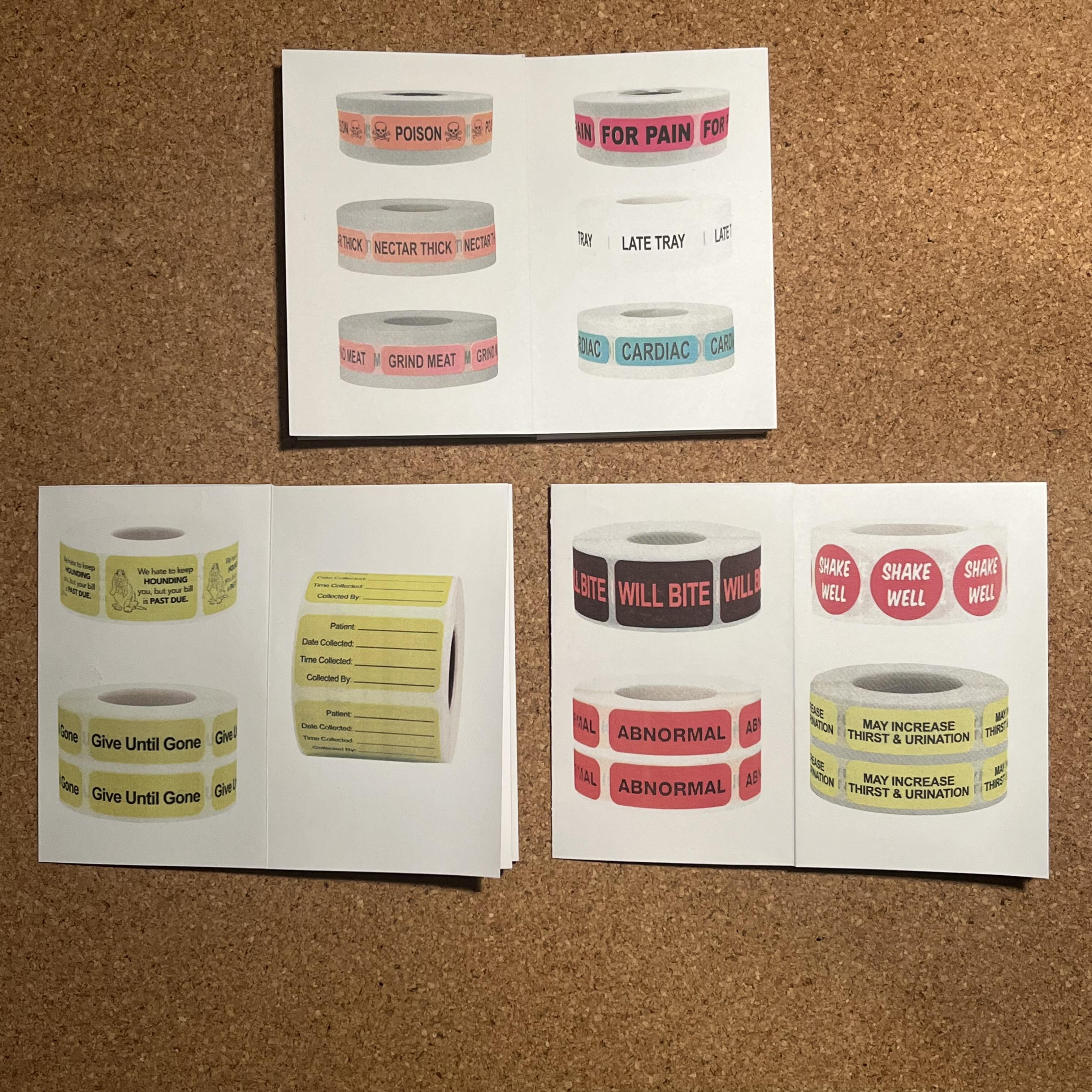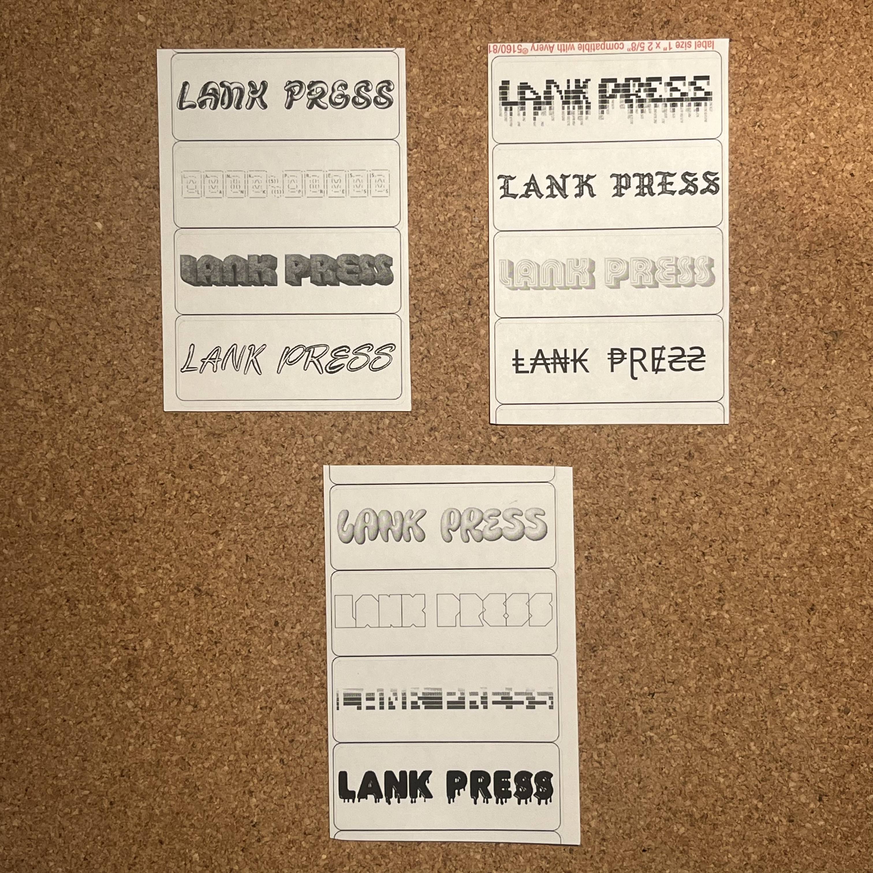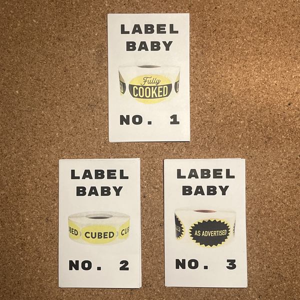 "Label Baby" is a trio of zines exploring a niche industry. every copy comes with a sheet of Lank stickers based on odd fonts and ASCII art, as well as a full-size image on the reverse that allows the zine to be displayed as a poster.
